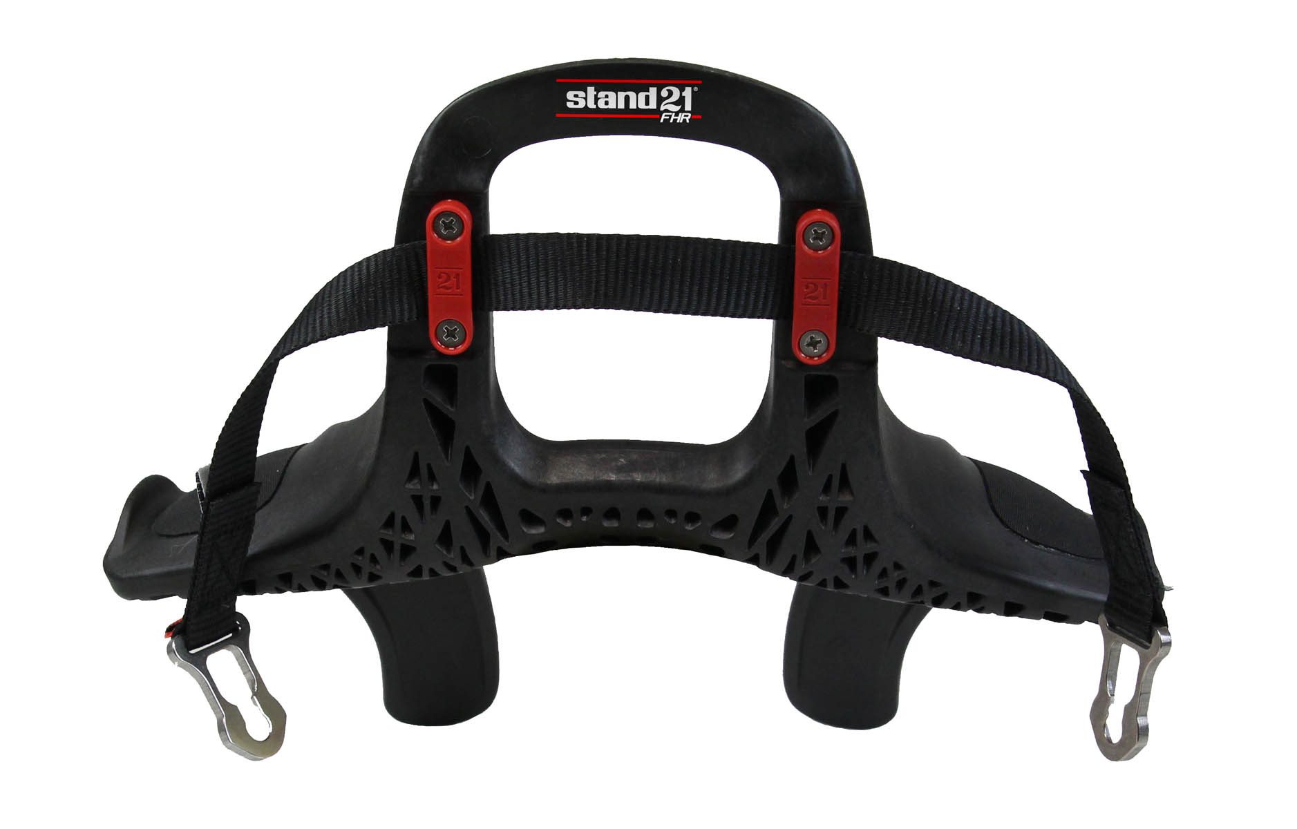 El Hans Stand21 Club Series 3 es fabricado en resina inyectada reforzada con fibra de carbono, el pero es de 640 gramos y existe en tallas M y L en ángulos 20°, incluye almohadillas negras, correa deslizante y bolsa de transporte. Certificación FIA 8858-2010