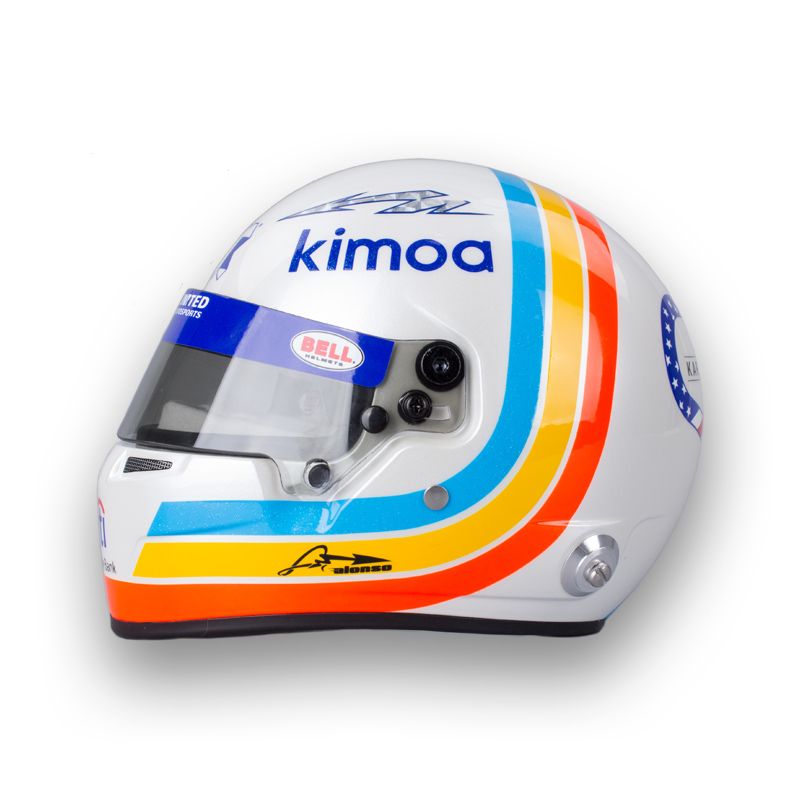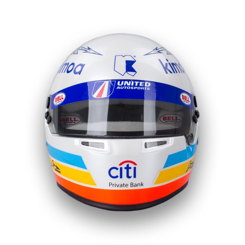 Mini casco coleccionable Bell, replica del casco que uso Fernando Alonso en las 24 Horas de Daytona 2018.