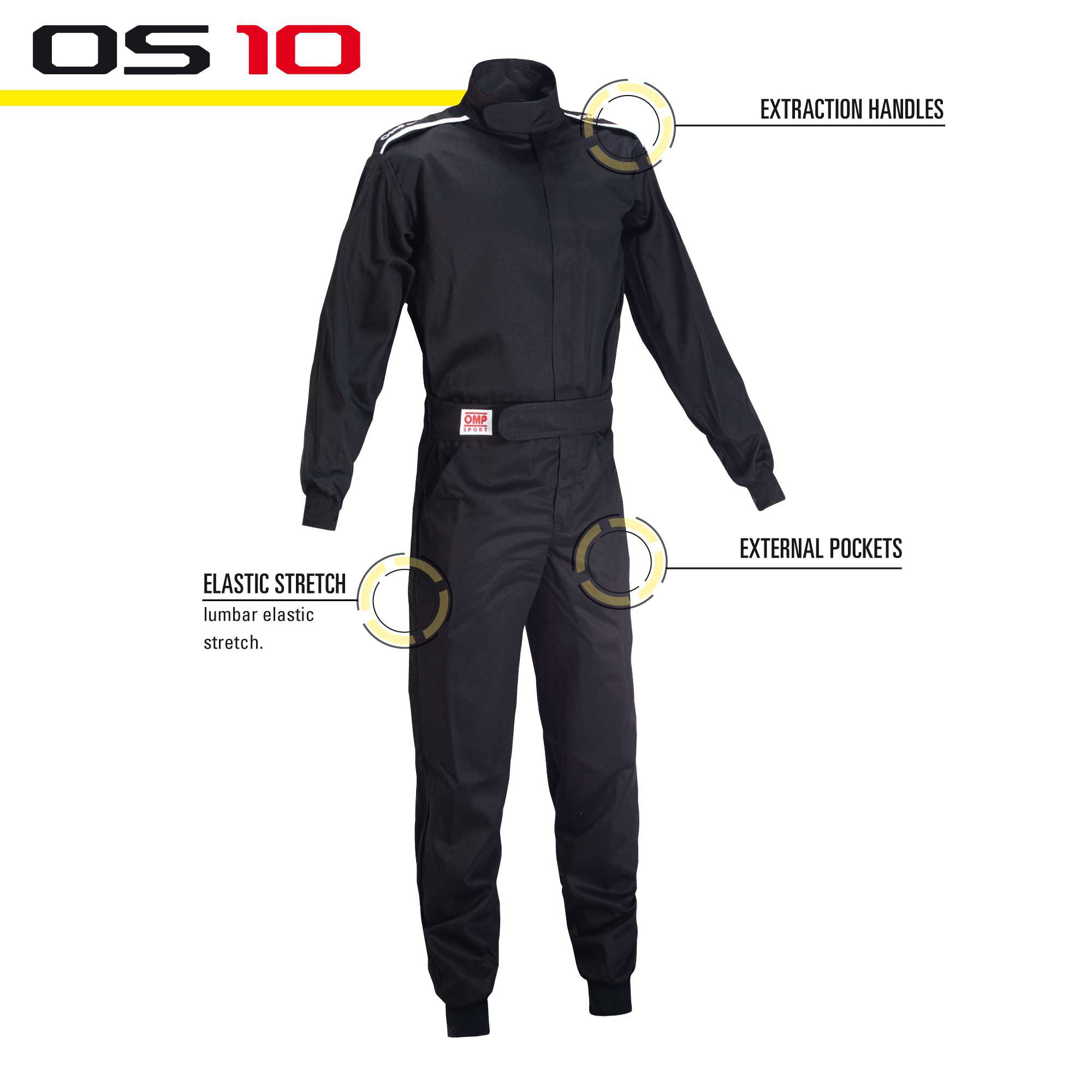Traje de carreras OMP Sport de una capa en tejido de algodón ignífugo. Tela tejida tratada, doble pliegue posterior para mayor comodidad, elástico lumbar, bolsillos externos. Con asas de extracción del conductor, acabado mate.