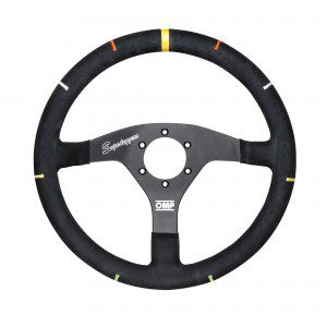 Volante de reconocimiento, en aluminio, 350 mm de diámetro, empuñadura redonda de 30 mm. Plano. Con marcas de colores en el cuervo para indicar los ángulos del volante (0° – 25° – 55° – 100° – 160°)